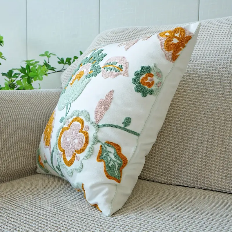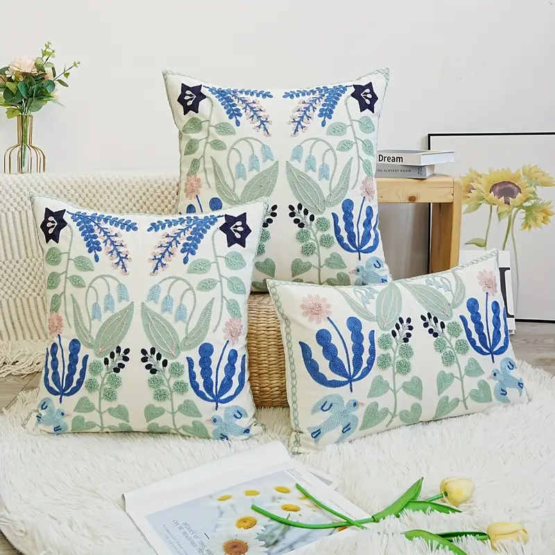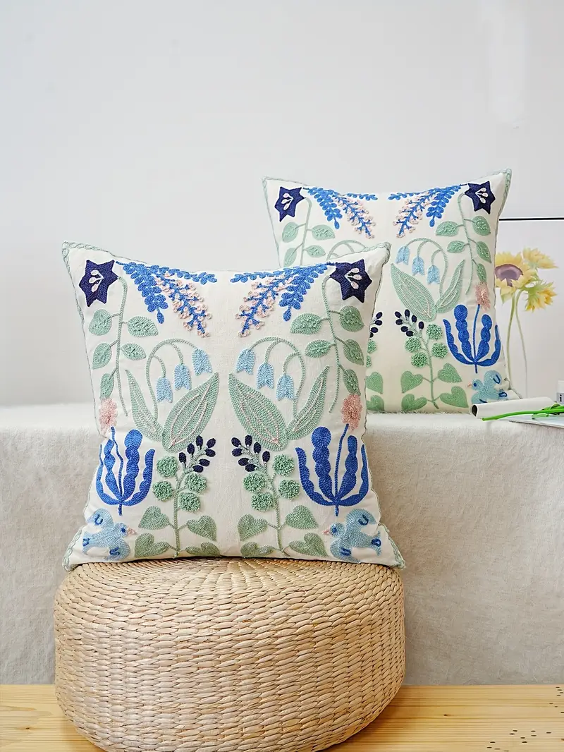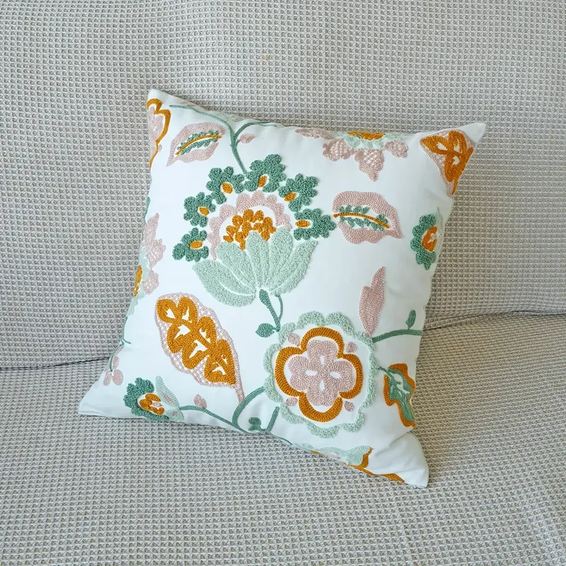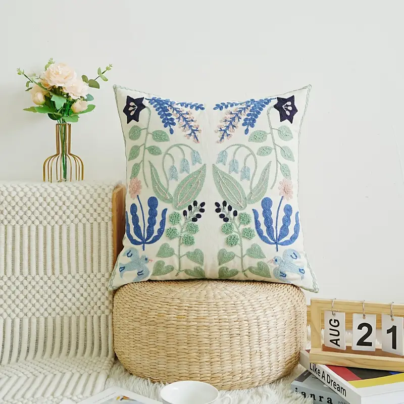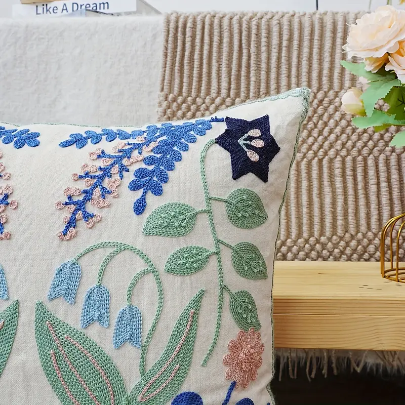Floral Life cushion cover with intricate embroidery and soft, durable fabric adds timeless charm and elegant texture to any sofa or bed.
