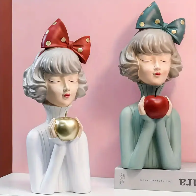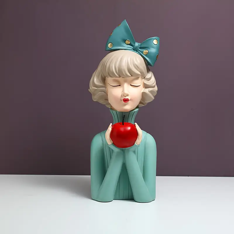 Hand-painted resin Coffee Girl figurine with bunny ears & glasses—contemporary, artistic décor for home, office, or stylish display.